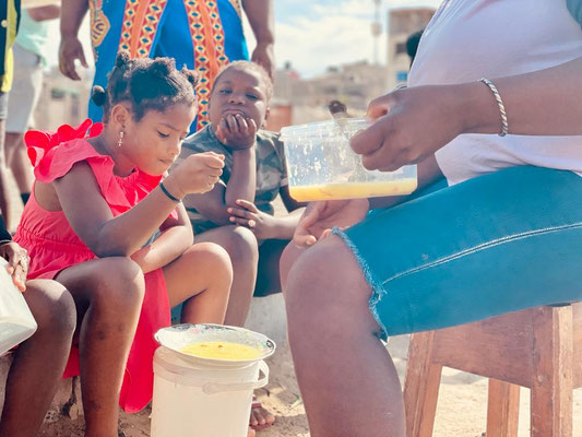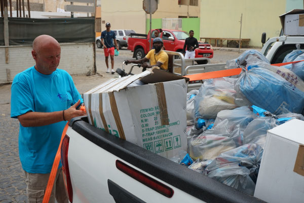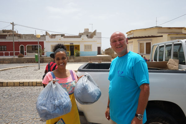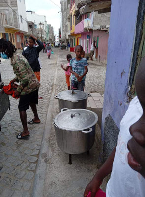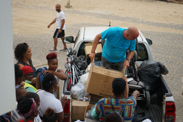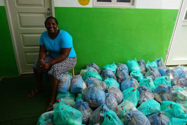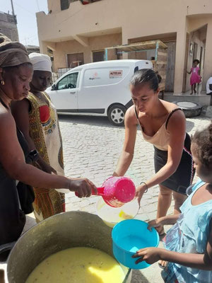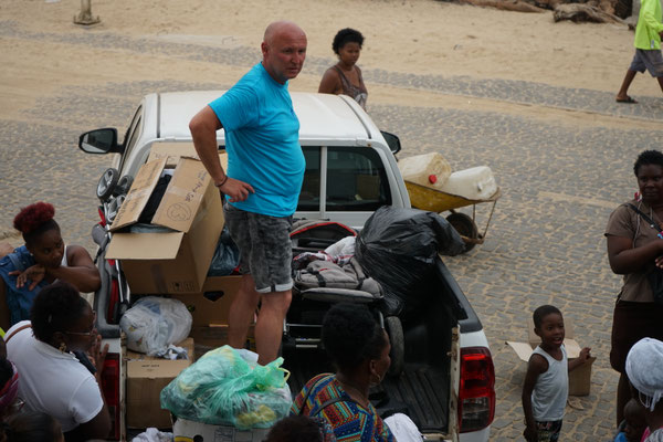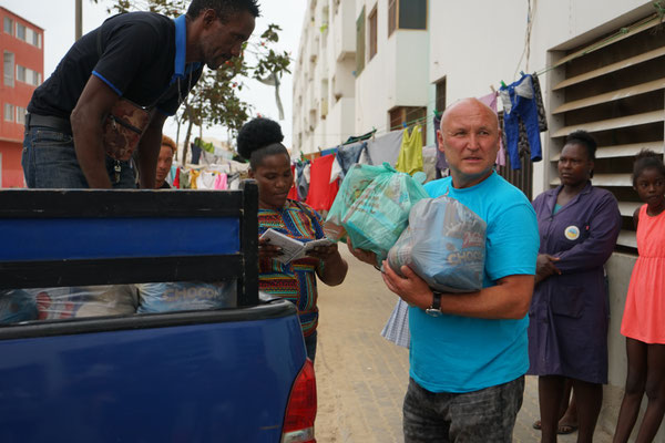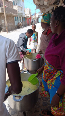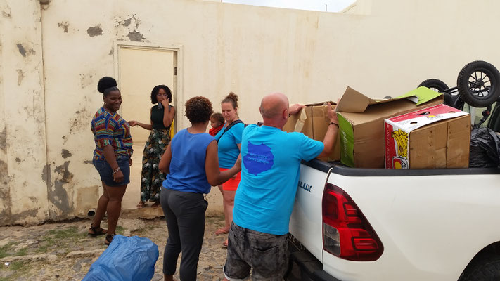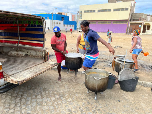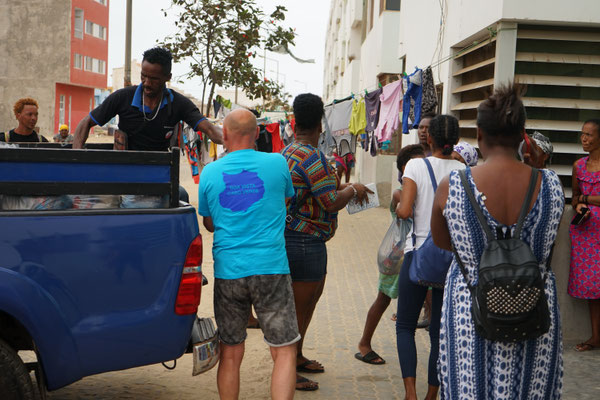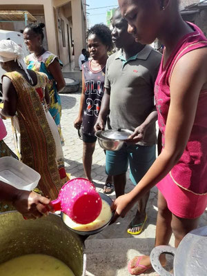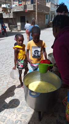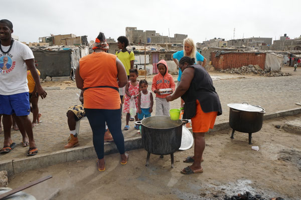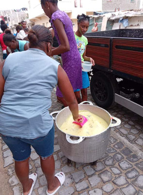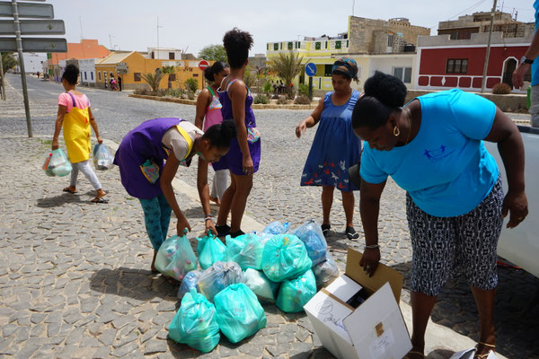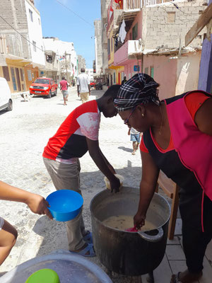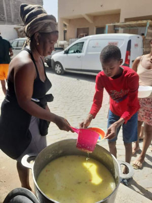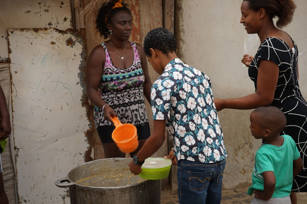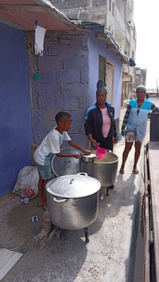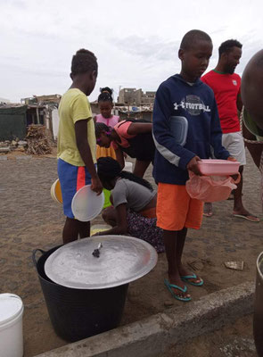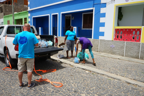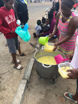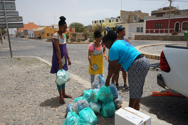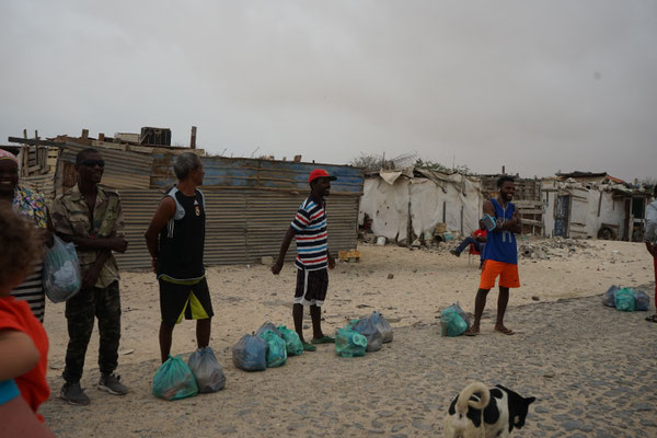 Es war nun länger nichts von uns zu hören, aber wie immer waren wir hinter den Kulissen aktiv. Wir haben letzte Woche 75 Essenspakete verteilt. Da wir lange nicht bei der Müllhalde und den Schweineställen waren haben wir auf 75 aufgestockt, um die Menschen dort zu versorgen, aber auch um die Leute in Sal Rei nicht "hängen zu lassen". Gerade jetzt in den Ferien mit geschlossenen Schulen und Kindergärten ist die Versorgung mit Suppe und Essenspaketen umso wichtiger, da die Kinder nun auch keine Mahlzeit mehr aus diesen Einrichtungen bekommen.