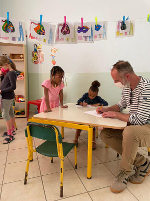Im Laufe der Woche wurden wir von Ayman und seiner Familie kontaktiert, er ist gerade als Tourist vor Ort, aber für die Bewohner von Sal Rei wurde er einiges mehr als ein normaler Tourist. Nachdem er schon einiges an Hilfe auf eigene Faust unternommen hatte, wurde er auf unseren Verein aufmerksam und kontaktierte uns direkt, um noch effektiver zu Helfen und zu schauen, wo was gebraucht wird. Er besuchte direkt nach unserem Telefonat Filo im Kindergarten, besorgte neues Papier und Stifte zum Malen und übernahm die Kindergartenpatenschaft für ein kleines Mädchen, das ab jetzt täglich im Kindergarten betreut und versorgt ist. Wer daran auch Interesse hat, kann sich gerne melden. So eine Patenschaft liegt bei 120 € für 6 Monate, also 240 € pro Jahr. Für die meisten von uns keine große Summe, aber für viele Familien ein großes Problem, was dazu führt, dass kleine Kinder alleine zu Hause sind - was das für Gefahren bedeutet, müssen wir hier wohl nicht weiter ausführen.