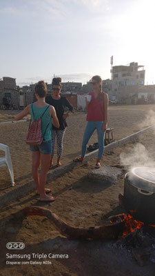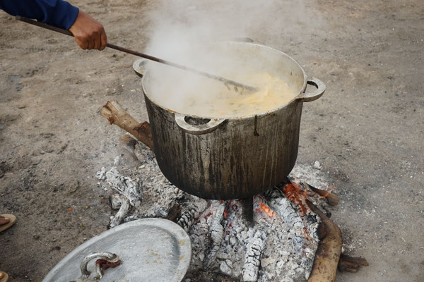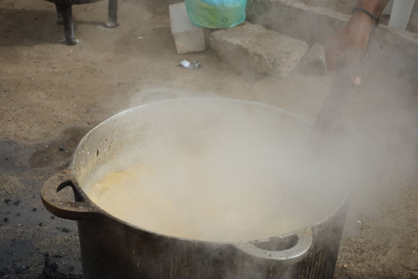 Dieses Wochenende ließ Filo dann die Töpfe doppelt heiß laufen. Am Samstag wurde auf der PMI-Baustelle gekocht, denn es war bereits an der Zeit, die erste Geschossdecke zu gießen. Da dies eine Arbeit ist, die sehr früh beginnt, anstrengend ist und vieler Helfer bedarf, hatte der Bauherr Joao die schöne Idee, die Helfer direkt bei der Arbeit mit einer guten Mahlzeit zu belohnen. Dies war auch wirklich nötig, da die Arbeiten bis in die Nacht dauerten.