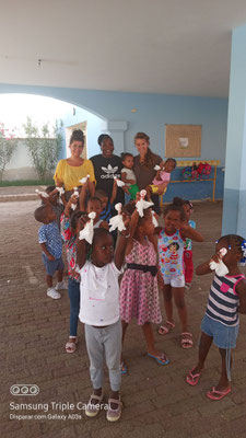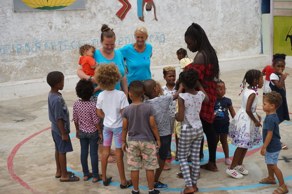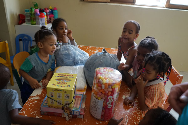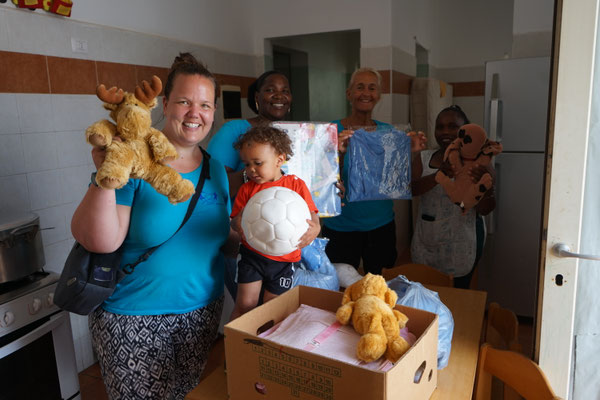 Heute möchten wir uns mal wieder bedanken, für die finanzielle Hilfe und auch für alle, die in ihrem Urlaub im Kindergarten vorbei schauen um ihre Patenkinder zu besuchen und ein bisschen mit den Kindern zu spielen. Viele Gesichter sind schon bekannt aus diversen Besuchen und die 2, denen wir heute ganz besonders danken möchten sind Cyntia und Linda, die in den letzten 8 Wochen so viel auf Boavista geleistet haben. Sie haben sich eine "Auszeit" aus ihrem Leben genommen um hier zu sein und etwas für die Bewohner zu tun. Jeden Wochentag haben sie am Nachmittag bei den Kindern im Panchini Kindergarten verbracht, gespielt, gemalt und gebastelt, den Erzieherinnen geholfen und viel Liebe und Aufmerksamkeit verteilt. Am Wochenenden haben sie geholfen die Suppe zu kochen und zu verteilen und das alles aus liebe zu unserem Boavista.