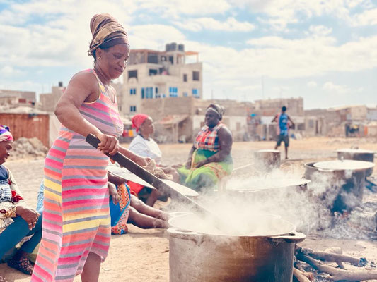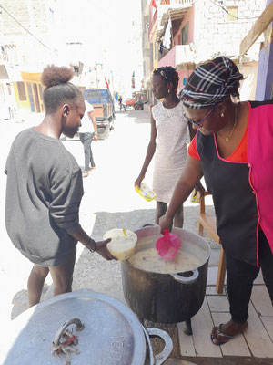 Wir durften uns einen Einblick in die Zubereitung und Verteilung der Suppe machen und auch etwas mit Hand anlegen. Bei der Verteilung an unterschiedlichen Orten konnten wir viele Menschen mit der Suppe versorgen. Viele Kinder bringen Töpfe, Schüsseln und auch nur eine leere Margarinendose zur Aufbewahrung der Suppe mit.