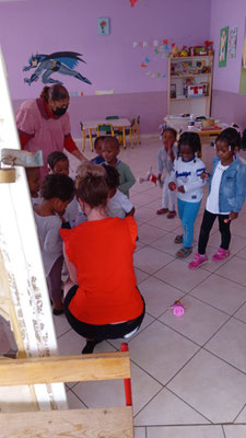 Dann konnte sich Filo letzten Sonntag über tatkräftige "Spülhilfe" bei der Suppenküche freuen und bekam dann unter der Woche auch noch so viel Besuch im Kindergarten, dass alle Gruppen ihre "persönlichen Betreuer" bekamen und viele tolle Sachen gebastelt werden konnten.