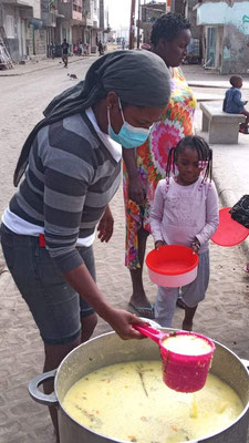 Die Kinder hatten bis zum 19. September Ferien und besonders in der Zeit waren Suppe und auch Essenspakete sehr wichtig, denn die Verpflegung in Schule und Kindergarten fand nicht statt.