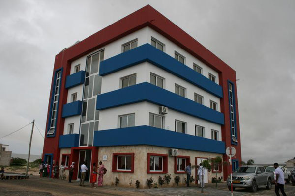 In dieser Woche wurde der Boden im Erdgeschoss betoniert und die Außenfassade des Haupteingsangsbereich fertiggestellt. Die Farben des Gebäudes Rot, Blau und Weiß sind die Farben der Kap Verden.